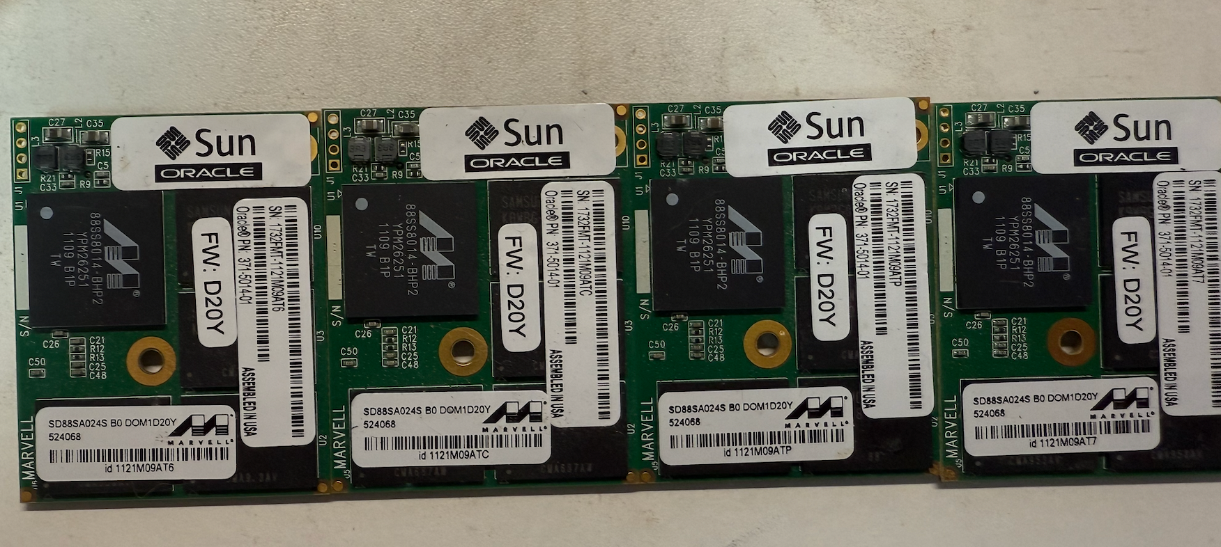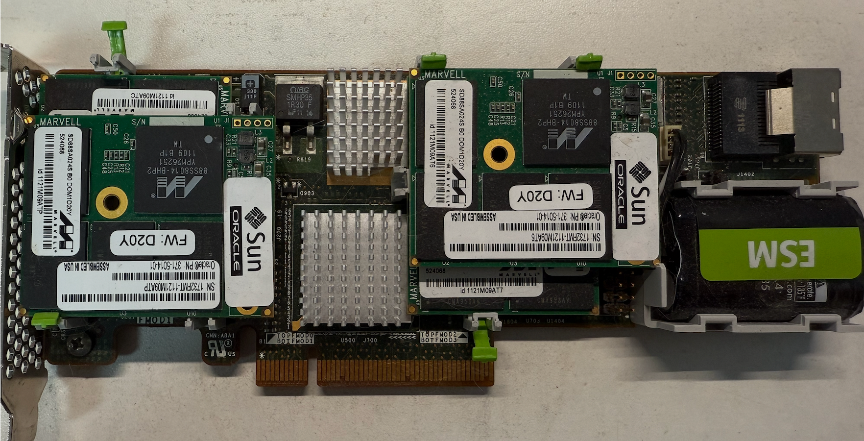 F20是当初群友在讨论SLC的时候推荐的,由于价格便宜且没有认亲就直接拿下了。这张卡由于是10年前Oracle的存储方案,所以并不是一张纯粹的SLC硬盘,而是一张带四块SLC硬盘的HBA卡。